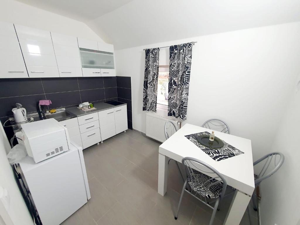 dnevna soba sa udobnom ugaonom garniturom na razvlacenje, opremljena kuhinja sa trpezarijom, 1 spavaća soba sa bračnim lezajem